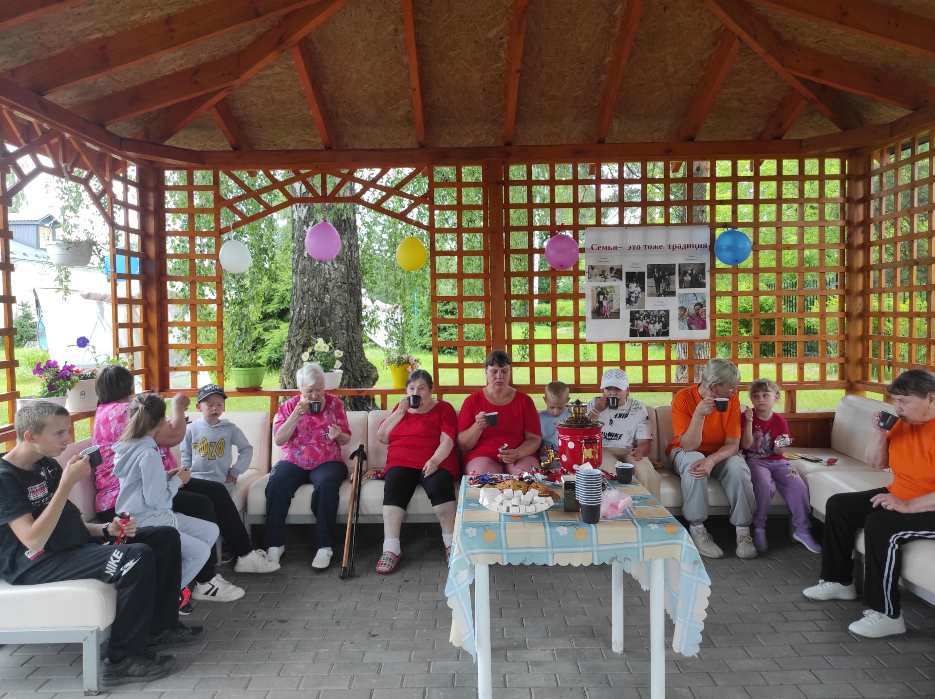 В весёлых спортивных семейных эстафетах соревновались команды Бугровых, Зариповых, Краевских. Весёлое и полезное для здоровья мероприятие завершилось вручением сладких подарков и дипломов за активное участие. Общее чаепитие в уютной беседке на территории отделения ещё больше создало атмосферу уютных домашних посиделок.