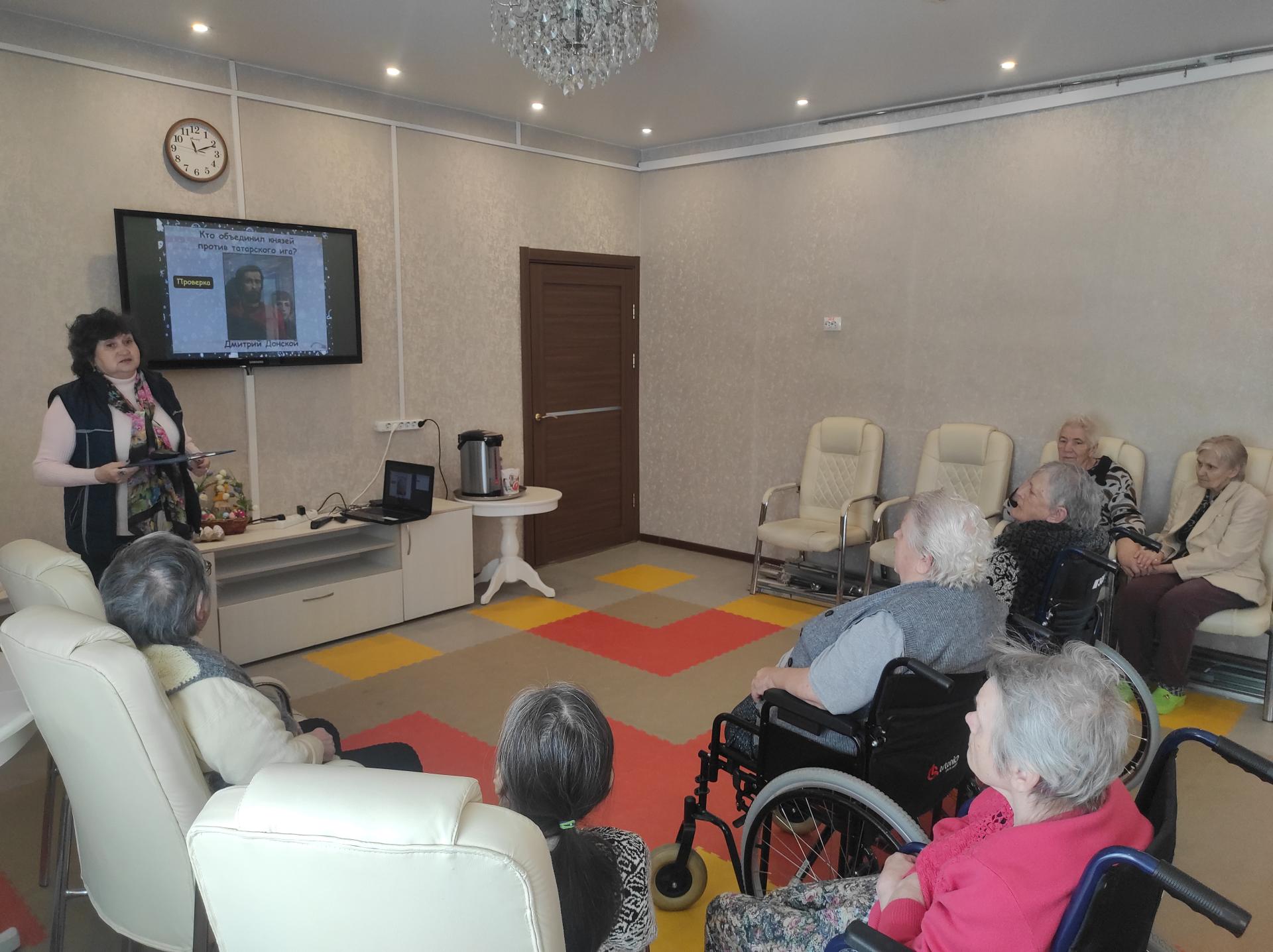 Основой игры стали опыт, героизм и богатые традиции наших предков. В ходе занятия пожилые люди и инвалиды вспомнили о великих подвигах русских героев: Александре Невском, Дмитрии Донском, Кузьме Минине и Дмитрии Пожарском. Звучали имена выдающихся защитников Родины, учёных, писателей, художников и композиторов.