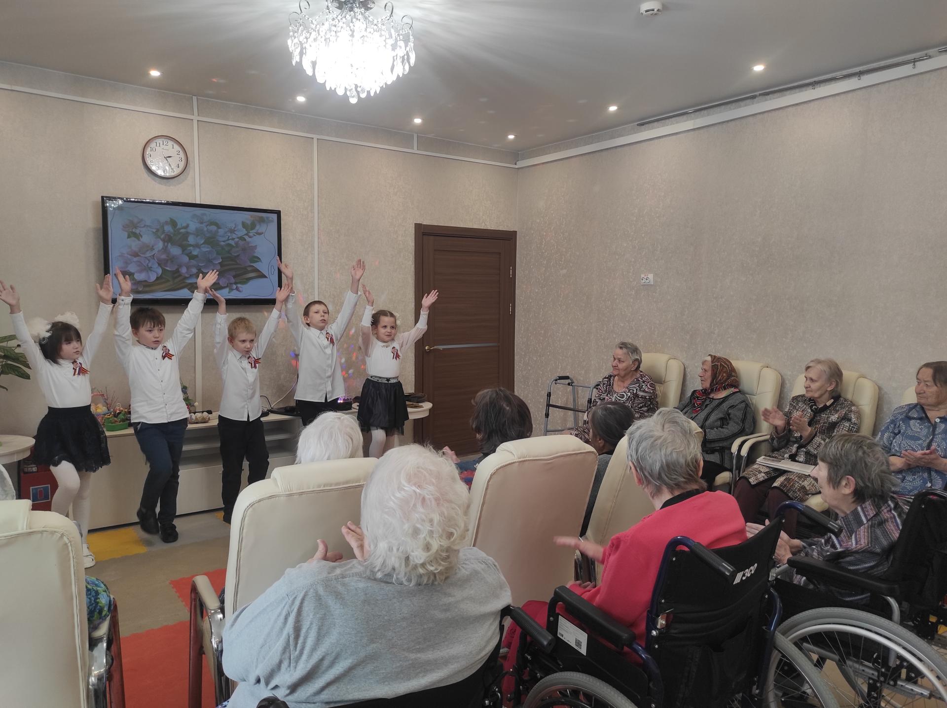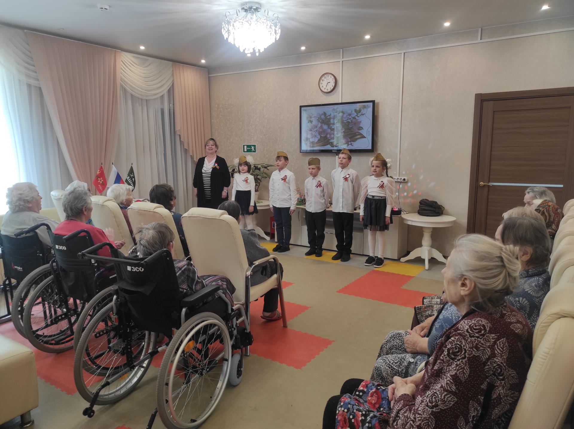 С приближающимся Днём Великой Победы воспитанники Гороховецкого центра «Семья» навестили тружеников тыла и детей войны, проживающих в отделении милосердия.