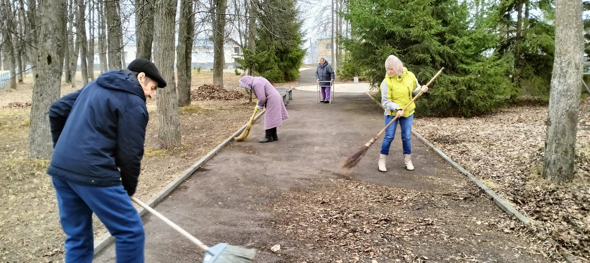 В рамках подготовки к празднованию 80-летия Победы в Великой Отечественной войне «серебряные волонтеры» отделения милосердия приняли участие в уборке памятника Неизвестному солдату в парке поселка Чулково. Пожилые люди привели в порядок памятные плиты и подмели дорожки, ведущие к памятнику.