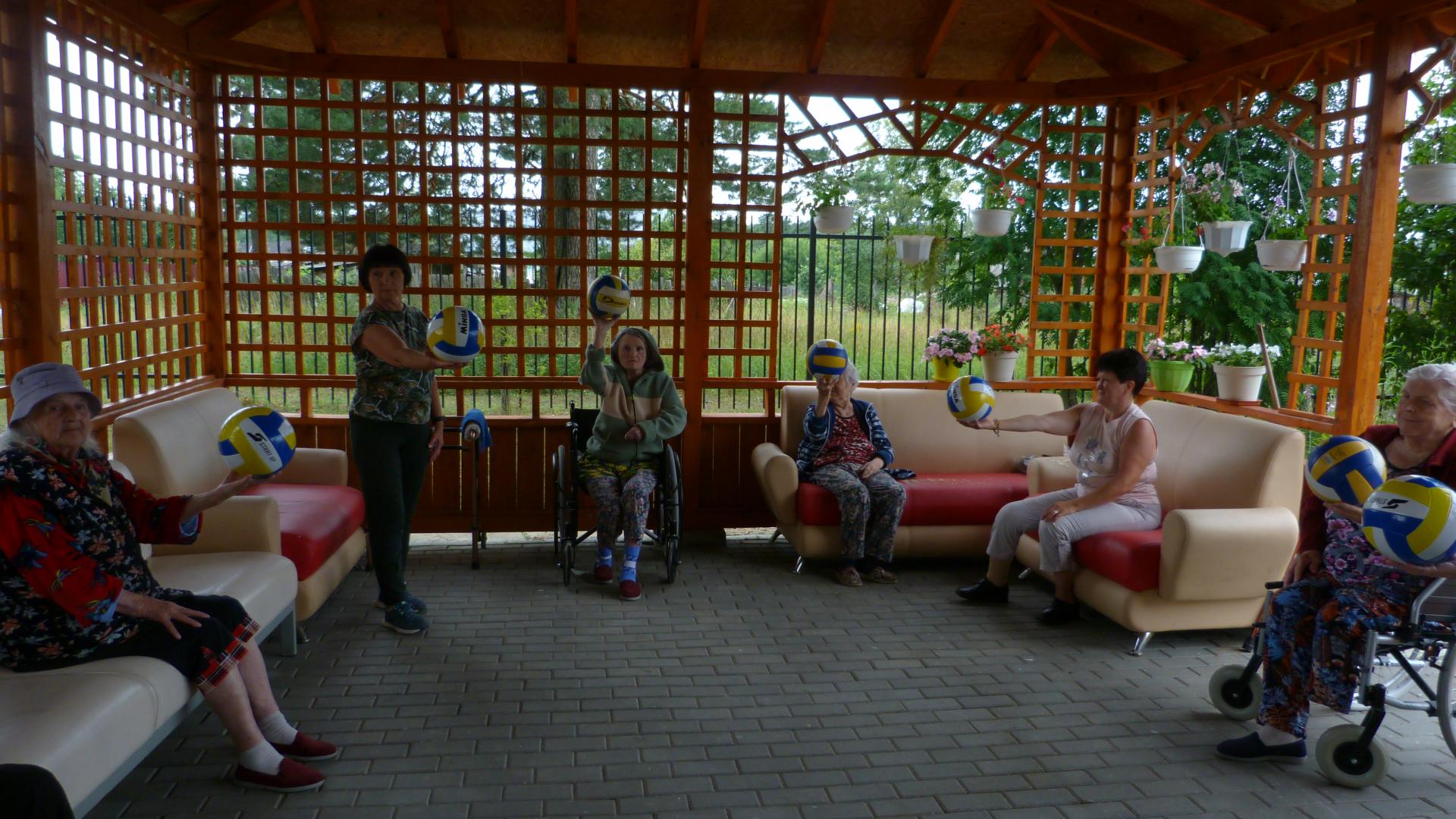 Ежедневно под руководством инструктора проводятся занятия как в зале, так и на спортивной площадке или на уютной веранде. Пожилые люди с большим удовольствием выполняют все упражнения, особенно упражнения и игры с мячом.